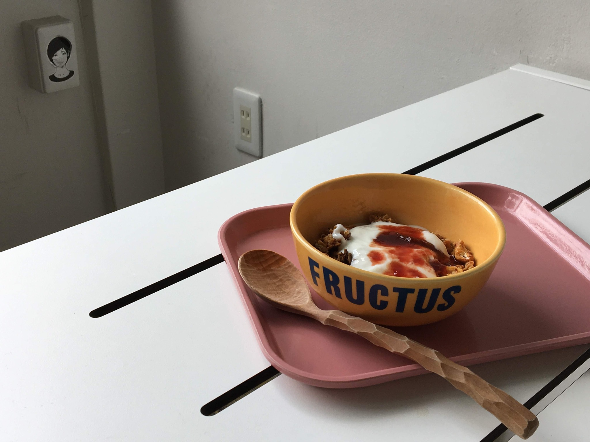 こちらのグラノーラボックスの隣の冷蔵庫からヨーグルトやミルクを取り出し、ジャムも選べます。